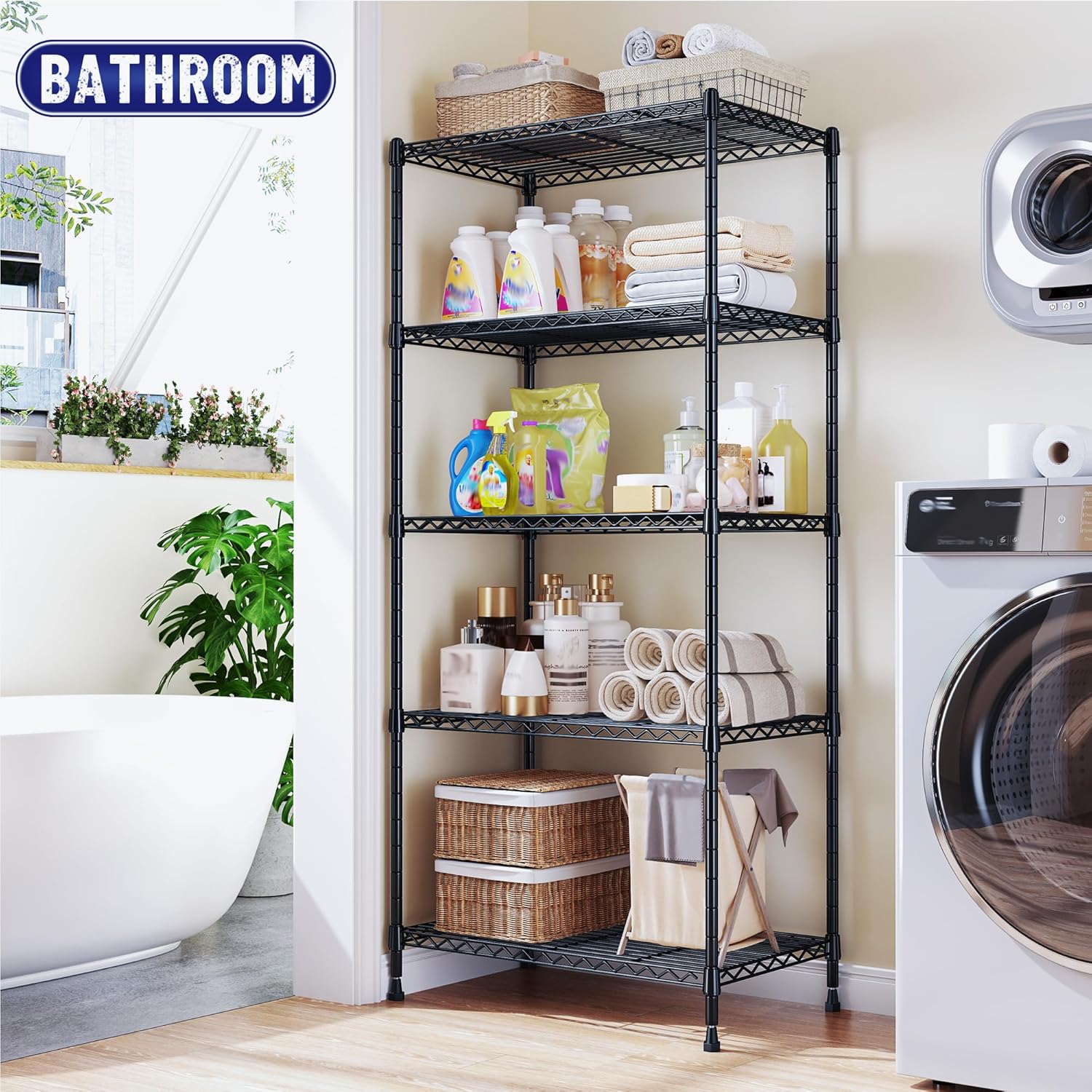 5 Tier Storage Shelves 1010LBS Wire Shelving Unit Adjustable Metal Shelving Pantry Shelves Sturdy Steel Commercial Shelf for Kitchen Pantry Closet Laundry School,13.6" D x 21.5" W x 59.4" H