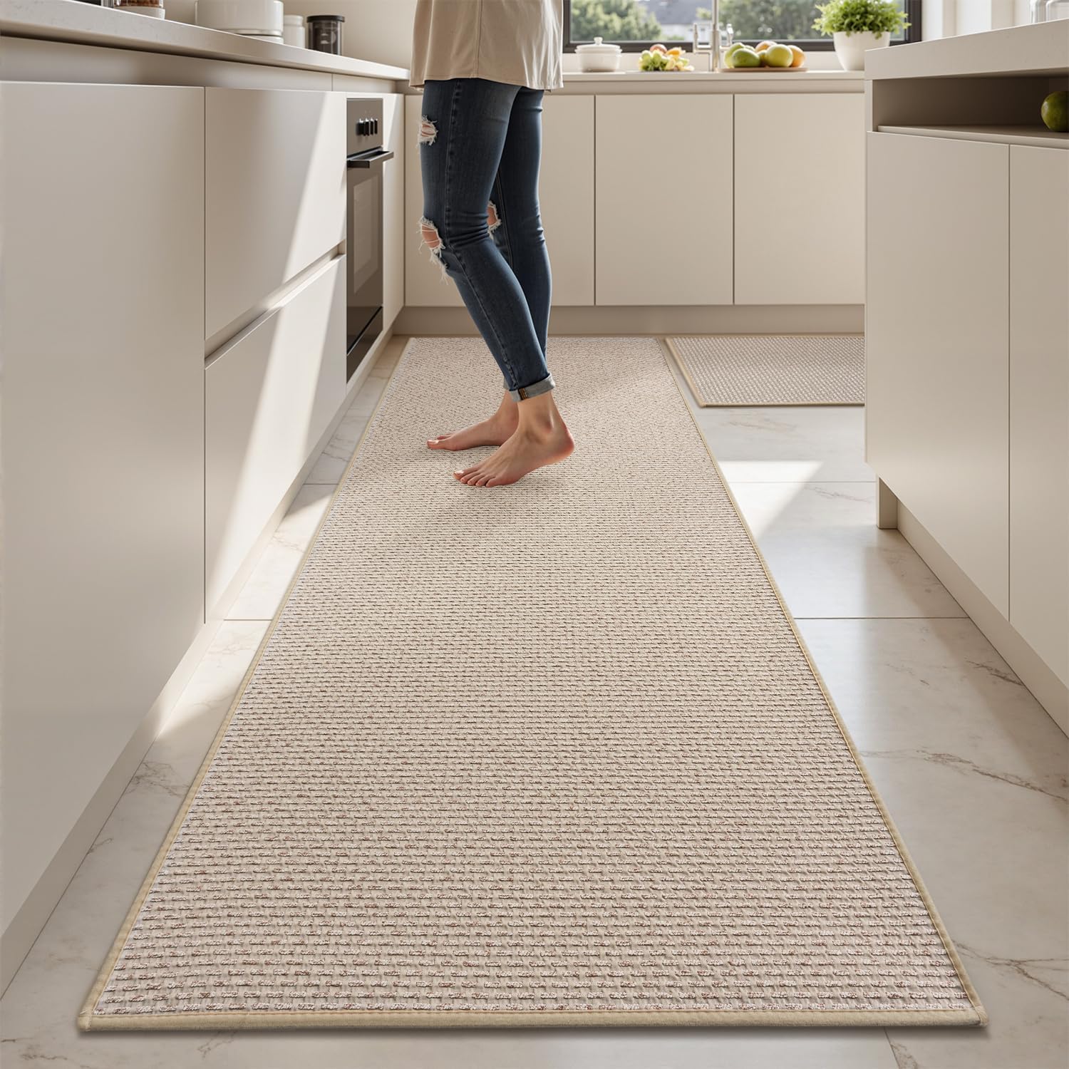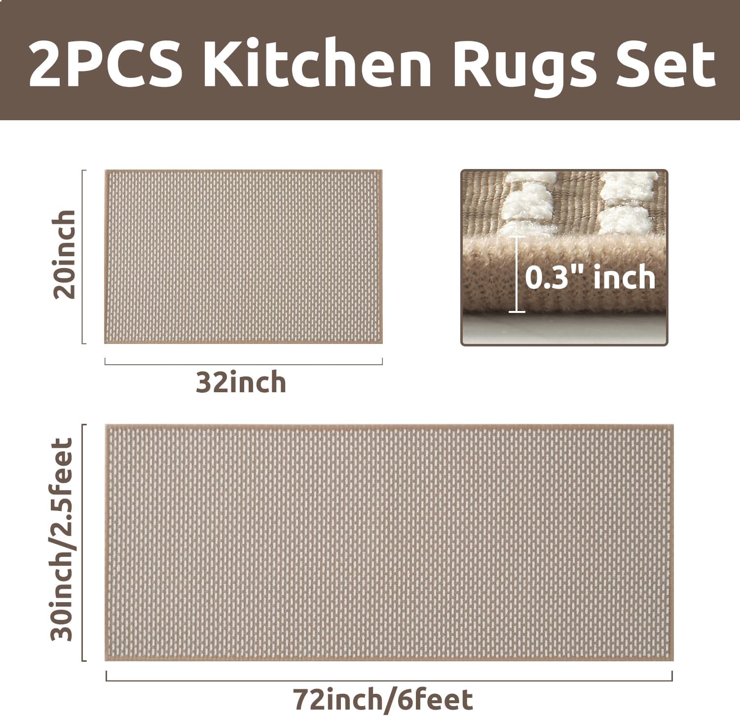 AMOAMI Non Slip Kitchen Rugs Sets of 2 - Extra Large 2.5'x6' + 20"x32" Kitchen Mats for Floor, Water Absorbent Kitchen Runner Machine Washable, No Pile Farmhouse Kitchen Carpet in Front of Sink Island