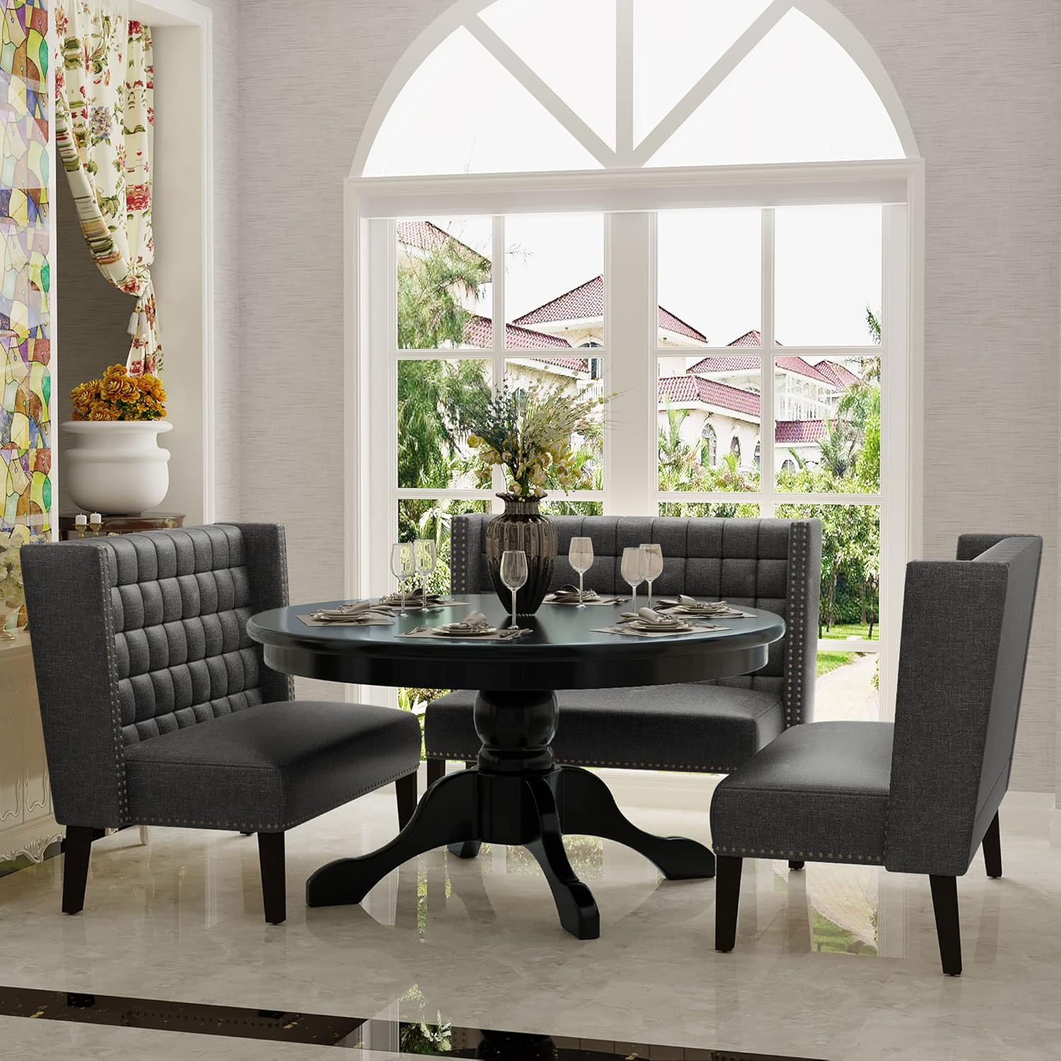 Contemporary dining bench/modern banquette seating features button tufted detailing on the backrest