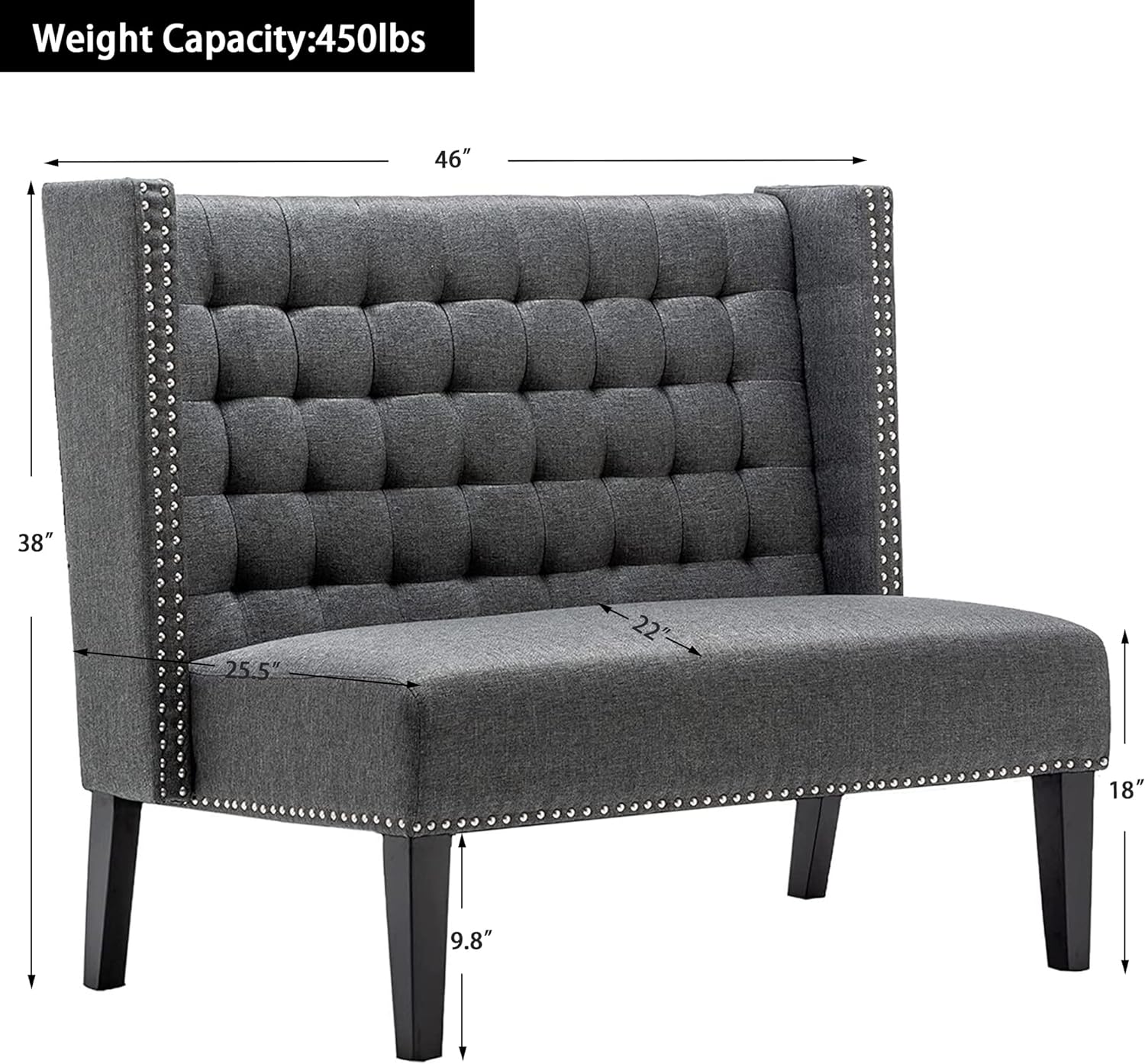 Andeworld Modern Loveseat Settee Bench Sofa Couch, Upholstered Banquette Dining Bench with Back for Dining Living Room Hallway or Entryway Seating,Slate