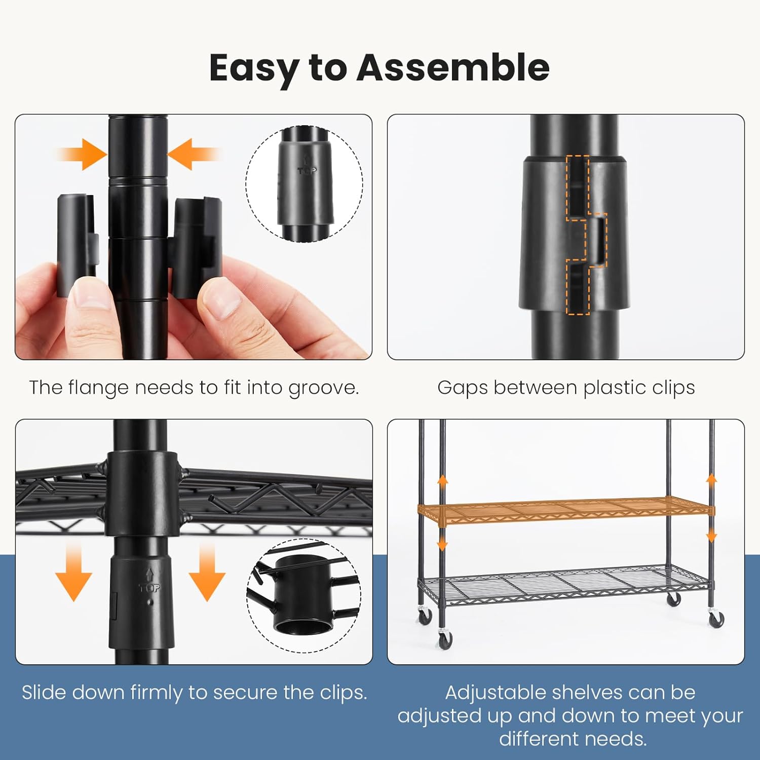 DUMOS Heavy Duty Rolling Garment Rack 3 Tiers Adjustable Wire Shelving with Side Hooks Portable Closets Freestanding Wardrobe with Lockable Wheels Double Hanger Rods for Hanging Clothes