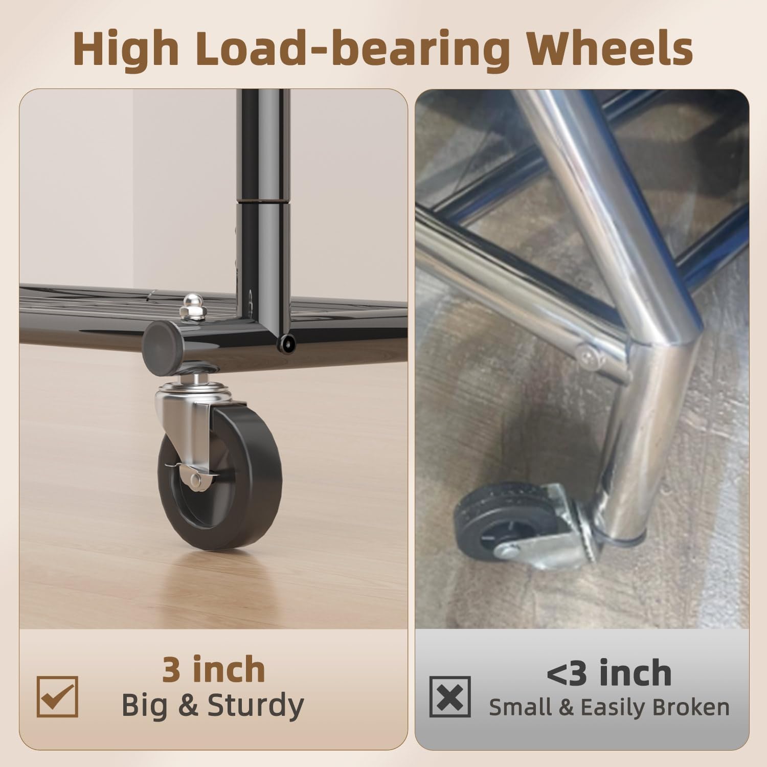 EAGMAK Heavy Duty Clothes Rack Load 556 LBS, Rolling Clothing Rack With Shelves, Height Adjustable Metal Clothes Hanger with Wheels Portable Wardrobe Organizer Garment Rod for Hanging Clothes (Black)