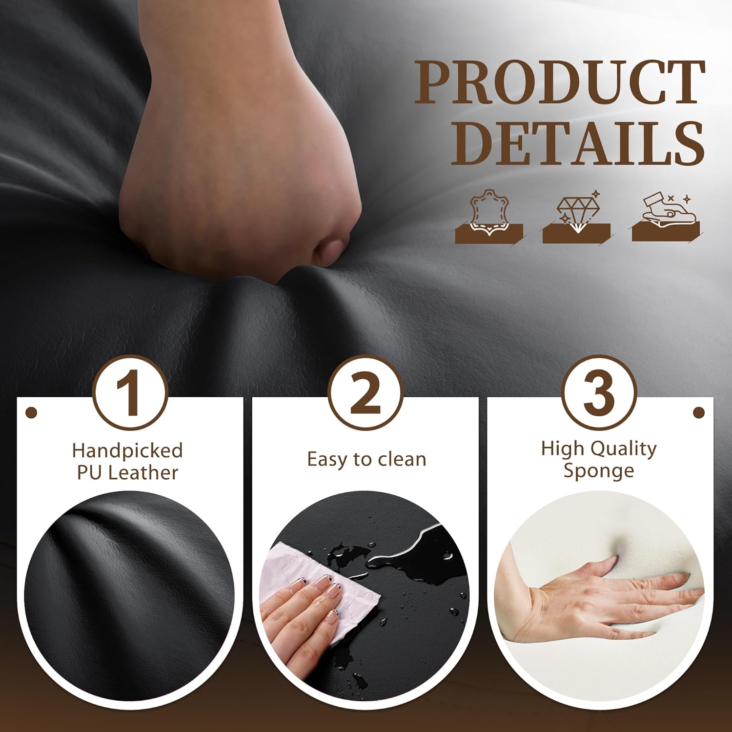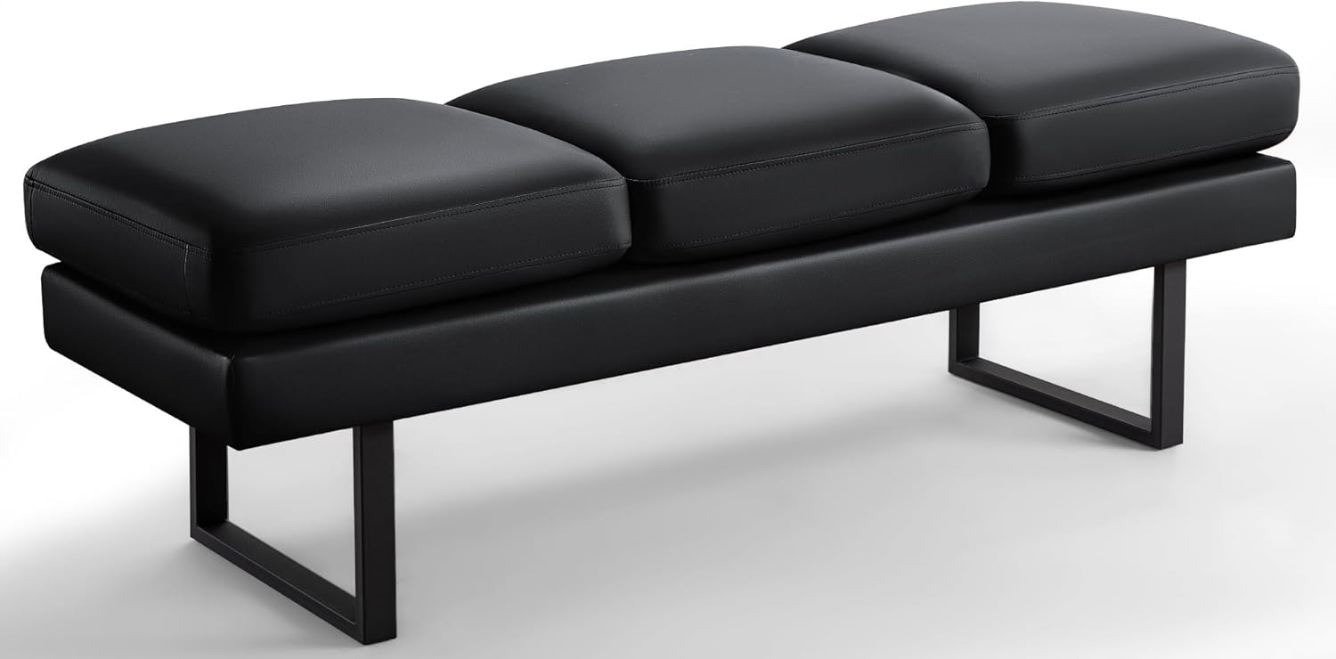 Furniwell Waiting Room Bench with 3 Seats,Faux Leather Reception Bench Upholstered Office Guest Chair Seating,Waiting Room Chair for Salon,Conference Room and Shop (Black)