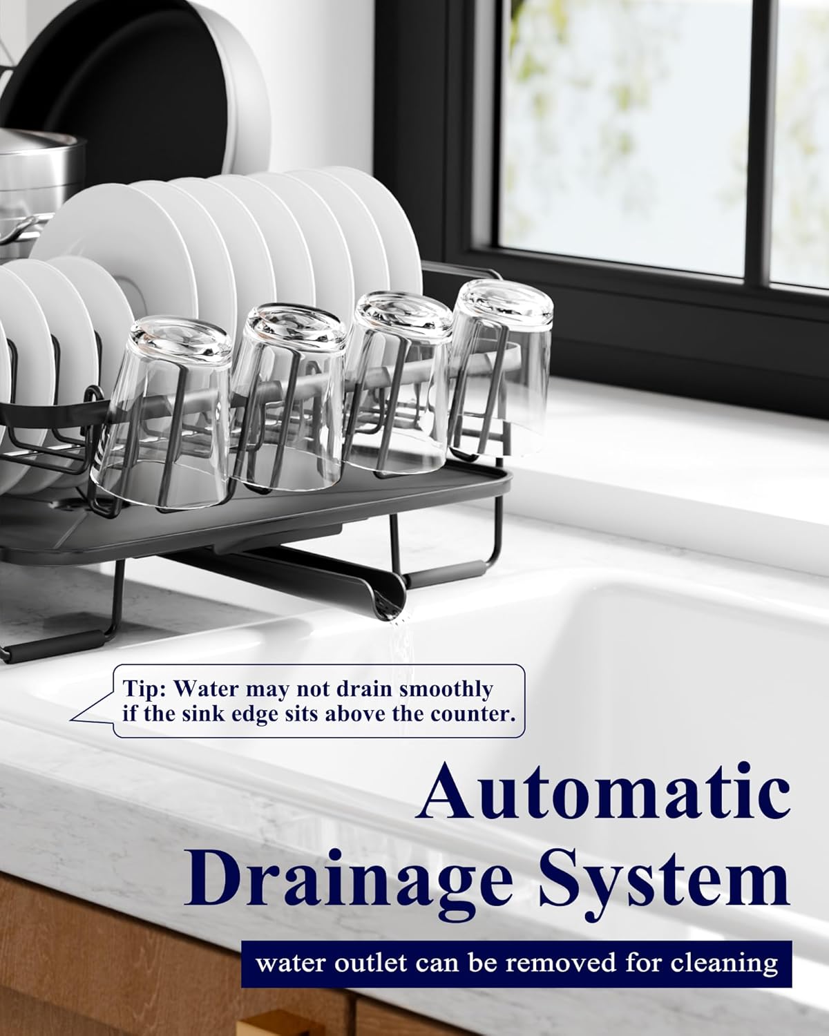 Kitsure Large Dish Drying Rack - Extendable Dish Rack, Multifunctional Dish Rack for Kitchen Counter, Anti-Rust Dish Drainers with Cutlery & Cup Holders 19.2"-26.7" L x 12.9" W, Black