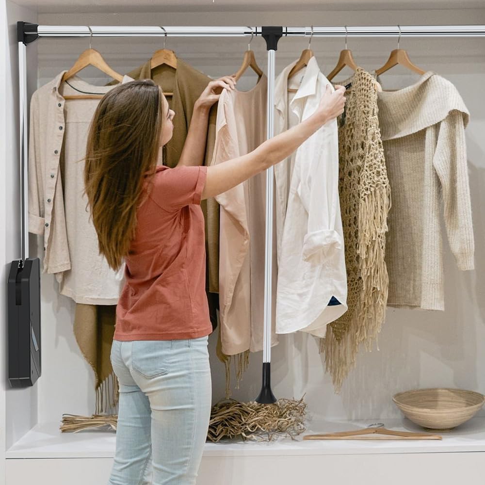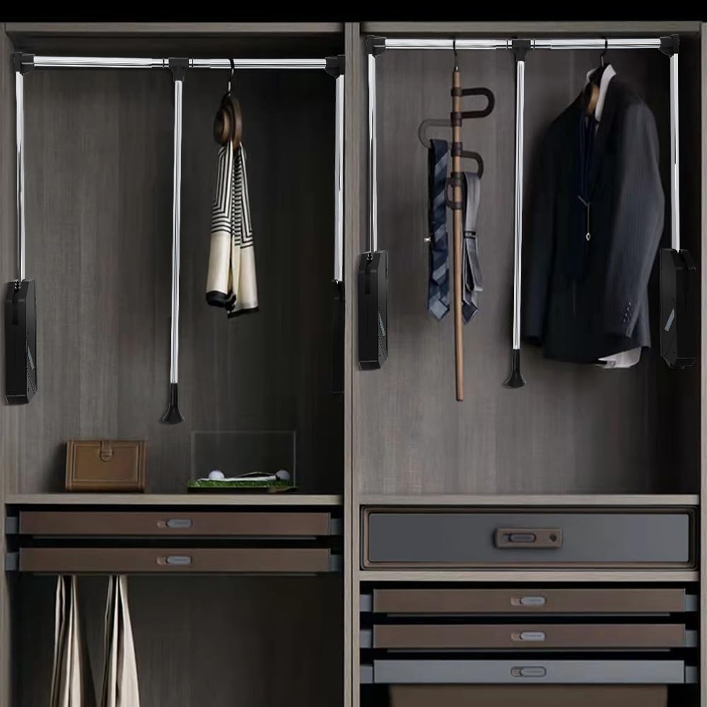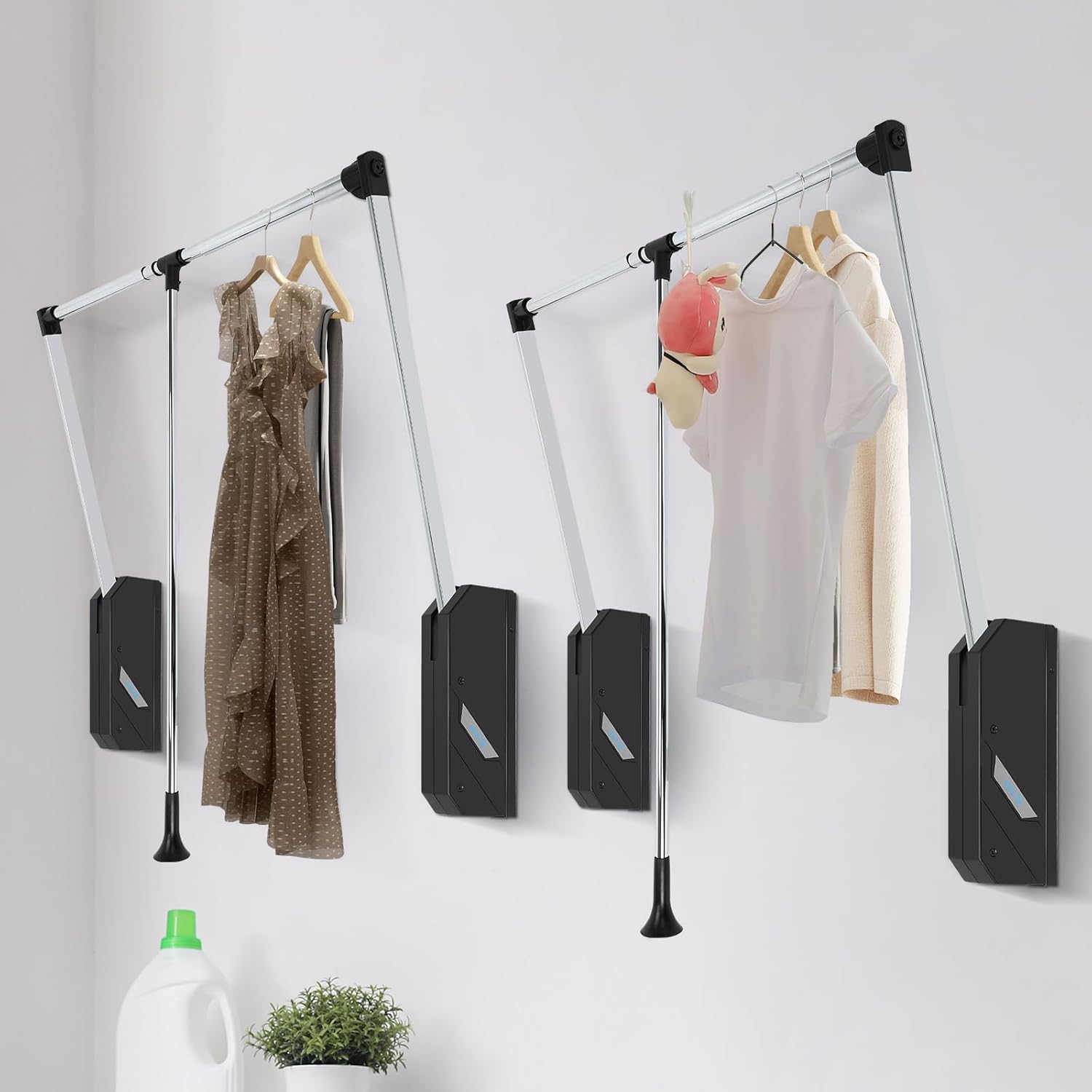 Pull Down Closet Rod, 60 lbs Load Capacity, Stainless Steel Adjustable 26-35 inches Soft-Close Wardrobe Lift Rail Organizer for Hanging Clothes, Two-way Buffering Side & Back Mounted Closet Rod